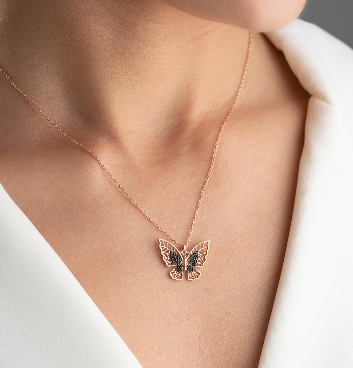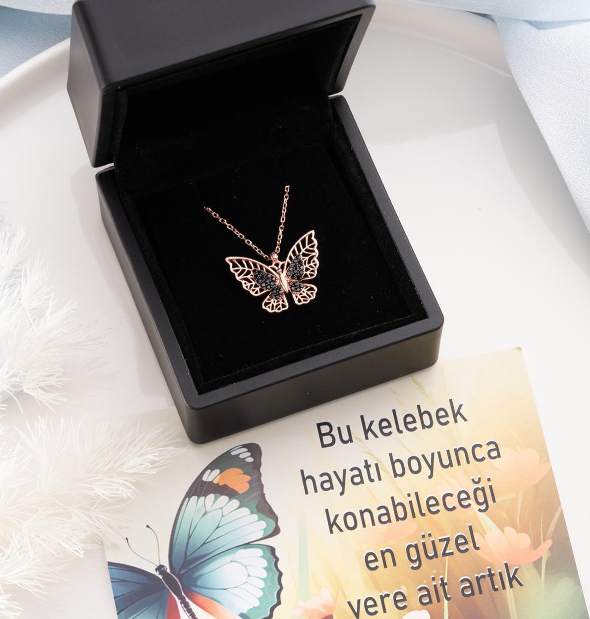 ÜRÜN ÖZELİKLERİ Ürün firmamız tarafından üretilmiştir ÜRÜN MADENİ 925 ayar gümüş ÜRÜN CINSİ bayan  kolye TAŞ CİNSİ. zirkon ÜRÜN RENGİ   pembe KAPLAMA rose kaplama ÜRÜN ÖLÇÜSÜ  45/1 cm ÜRÜN AĞIRLIĞI  5   gr ÜRÜN MODELİ   kelebek kolye ürün ebatı en boy ölçülerde yüzde 5 sapma olabilir BAKIM ÖNERİLERİ ürünü kimyasal parfüm alkol ve dezenfektan gibi maddelerden uzak tutulmalı bunlardan temas edilirse hafif durulayıp kuru bir bez ile hafifçe silin kullanmadığınız zamanlarda kutusunda nemli olmayan yerlerde saklayınız GÖNDERİM & TESLİMAT siparişleriniz alındıktan sonra stokta mevcut ise pazar günü hariç ayni gün kargoya verilir stoku tükenmiş ürün ise 4 iş günü içinde  tedarik edilip gönderilecektir ürünler hediye kutusu ile gönderilecektir ürünü müşterilerimize iyi günlerde kullanmalarını dileriz  İADE & DEĞİŞİM alınan ürünler yasal kurallara uyulduğu zaman 14 gün içinde koşulsuz iade edilebilir veya değişim yapılabilir. kusurlu ürün hariç iade edilecek ürünler kullanılmamış ve zarar görmemiş olması gerekmektedir.
